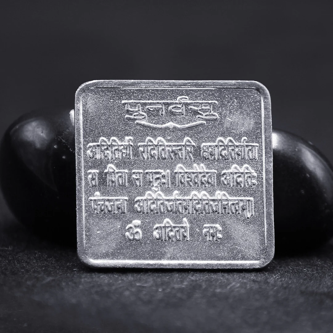 The Punarvasu Nakshatra Yantra is a powerful astrological-metallic design useful to foster balance, attract prosperity, and combat negative thoughts. It symbolizes strength and the cyclical nature of life, echoing the essence of its ruling deity, Aditi, who represents nurturing and abundance. This yantra plays a significant role in enhancing happiness across various aspects of life, making it particularly beneficial for those seeking stability and success. The Punarvasu Nakshatra is associated with intelligence, creativity, and adaptability, traits that the yantra helps to amplify. Family Harmony and Health Protection When families have multiple members influenced by Punarvasu Nakshatra, conflicts and health issues often arise. The Punarvasu Nakshatra Yantra serves as a powerful shield against these negative effects, ensuring peace and well-being for all members of the family. Business Success and Financial Stability Financial challenges, instability, and unexpected business disruptions are commonly linked to Punarvasu Nakshatra’s adverse effects. The Yantra acts as a protective force, helping you maintain financial stability and success in your personal and professional life. Vastu Dosh and Other Issues The Punarvasu Nakshatra Yantra also helps correct vastu dosh in your home, clearing out negative energies and fostering a positive, harmonious environment. Proper placement of the Yantra amplifies its beneficial energies, ensuring peace and prosperity. Yantra Crafting and Placement The Punarvasu Nakshatra Yantra is crafted with precision, based on sacred geometry and energized by rituals performed by Gurudev G. D. Vashist Ji. To get the best results, place the Yantra in the puja room or the northeast corner of your home. It can also be installed in business premises for continued success and protection from negative influences. Conclusion The Punarvasu Nakshatra Yantra is a vital tool for those impacted by the negative effects of this Nakshatra. Whether dealing with family disputes, health issues, financial instability, or vastu dosh, this Yantra offers a path to peace, prosperity, and protection in all areas of life.
